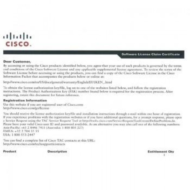 Лицензия Cisco FLSA1-BIN-1X10GE=